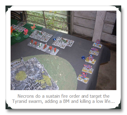 - Tyranids don't rally the Exocrine swarm and Nercons don't rally a warrior unit, both sides remove Blast Markers…..
