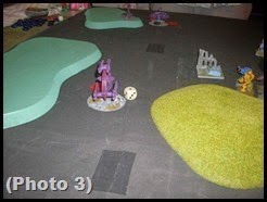 - KWL: Try and active Errant unit and roll a one(Photo 1), and so targets the Obelisk unit with 3BM’s on it, they manage to kill one and break the unit, because of BM’s(Photo 2). It falls back about 10cms so that it touching the hill behind it(Photo 3)..